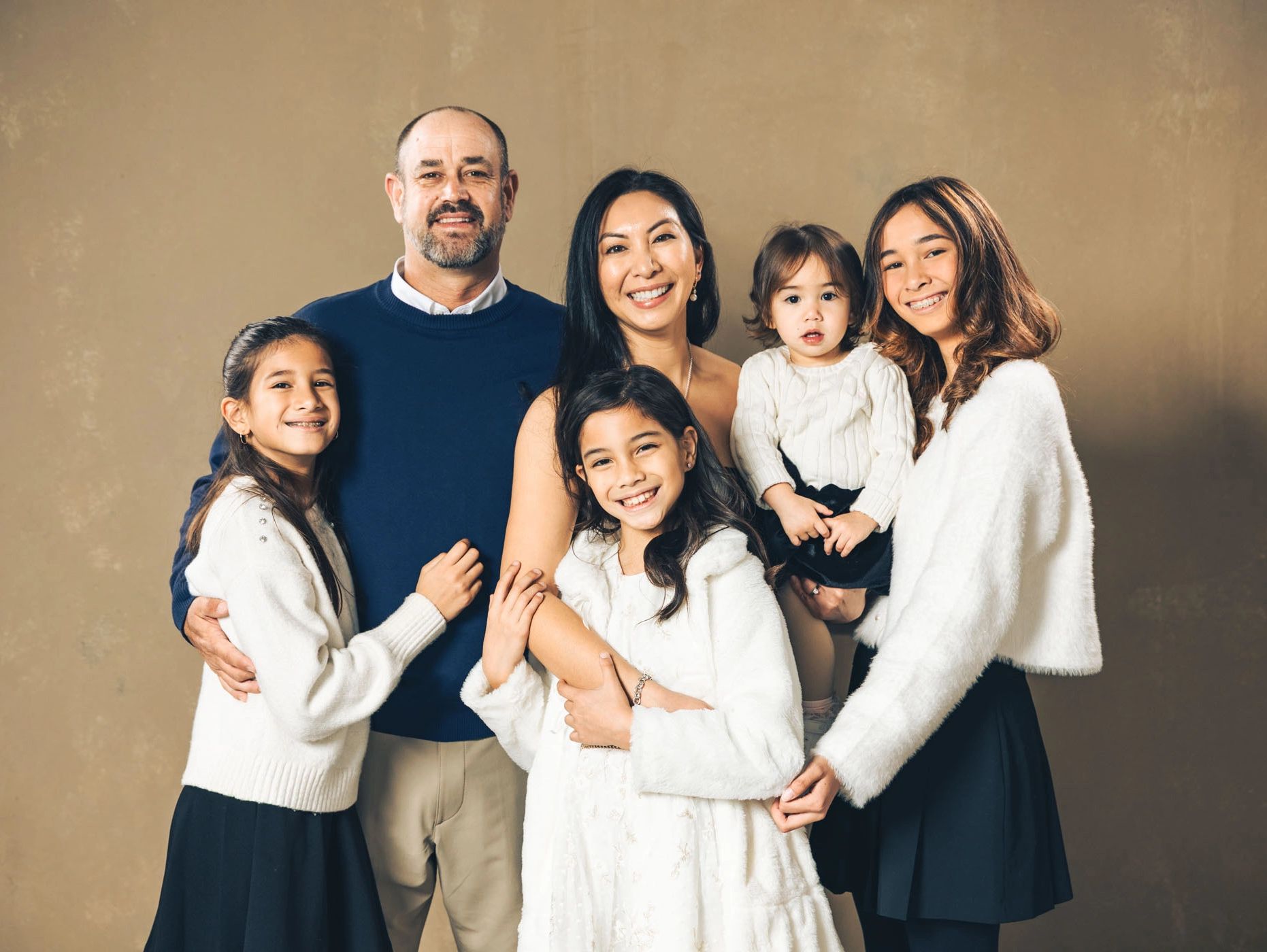 Why choose studio: Controlled lighting, multiple backgrounds, efficient and comfortable for all family members